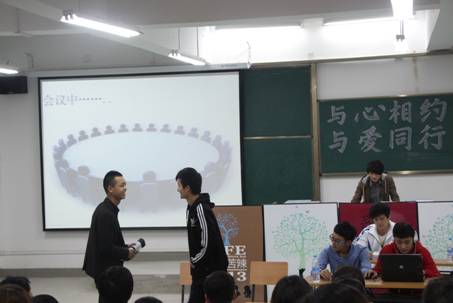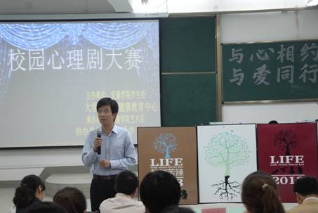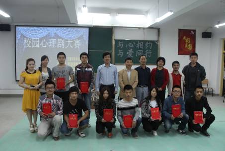 2013年5月29日晚20:00,今年会官网第六届大学生心理健康教育文化节系列活动之校园心理剧大赛在江北校区2102教室顺利举行,校党委副书记胡鸿晓,学工部部长郑树青,学工部副部长车静,艺术系党总支书记冯丰收等7位老师担任本次大赛的评委。