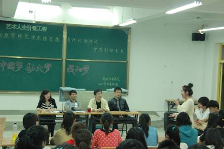 接着,同学们就“我的梦”主题踊跃发言,结合自己的实际,从各个方面描述了自己的梦想、班集体的梦想,以及辨析了“梦想与幻想”的关系,得出了梦想是前进的目标,只有行动才能实现、中国梦是实现个人梦的广阔空间、个人梦是实现中国梦的基础的共识,同学们的精彩发言赢得了大家一阵阵热烈的掌声,现场气氛热烈。11级艺术设计专业蒋晟、音乐学专业周琦翔、美术学专业学生李宝成等十余名同学畅谈了以后努力学习,力争考上研究生,继续深造,实现个人梦想,为我系争光;11级、12级艺术设计的同学向大家展示了自己未来创业的梦想,做一个对社会有用的人,美术学学生谈到了要到祖国需要的地方去支教,“为中国梦做出自己的贡献”。音乐学专业的廖宁同学用自己优美的歌声表达了自己的情怀,将座谈会推向一个高潮。