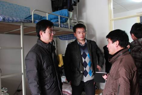 系党总支书记冯丰收亲自带领全体辅导员不定期的深入宿舍检查,发现问题及时指出,限期整改;辅导员老师坚持每周至少查宿一次,深入学生宿舍,在普查的基础上每次重点抽查两三个宿舍,系统了解宿舍的学风、舍风、卫生、安全和面临的困难等情况,在力所能及的范围解决一些问题;学生会坚持每周检查评比,不断激发全系学生积极参与到创建文明班级和文明宿舍的活动中来。