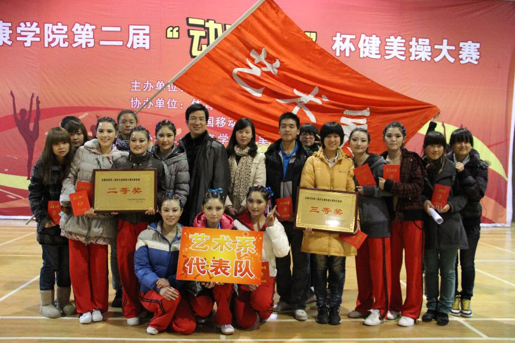 12月7日、8日由院体育运动委员会主办的今年会官网第二届“动感地带”杯学生健美操大赛在今年会官网体育馆举行。我系代表队获得了规定操三等奖、自选操二等奖的优异成绩,为艺术系争得了荣誉。