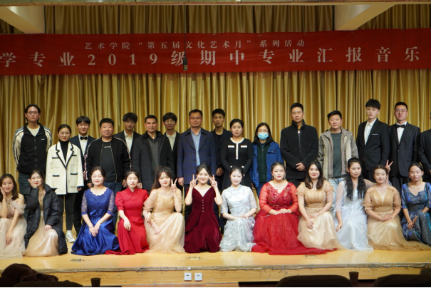音乐会由马乐妍同学的女声独唱《《越人歌》》拉开帷幕,接着,音乐学专业2019级22名同学分别从声乐、钢琴、古筝、二胡等专业学习方面进行了技能展示,同学们的展示形式多样、精彩纷呈,展示了同学们一定的专业修养。