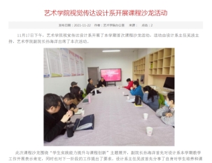 其次,教学改革、教学活动有序开展。设计系组织开展了“学生实践能力提升与课程创新”课改沙龙,针对设计系学生的实践能力提高进行了探讨。范义付、付苗、李秀春、黄小荣等老师举办了“课堂教学创新公开观摩课”,邀请校督导单福东、院督导张静、鄢志莉、徐鸿鸣等老师进行现场点评,参与听课师生60余人,效果良好。