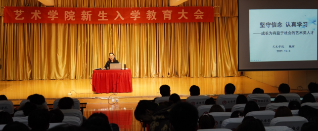 为进一步引导新生坚定理想信念,树立远大目标,提升艺术素养,12月8日晚,今年会jinnianhuicom在1401教室开展了《坚守信念 认真学习-成长为有益于社会的艺术类人才》专题讲座。讲座由今年会官网副院长鲍丽主讲,新生辅导员孟莉主持,2021级全体新生聆听了讲座。