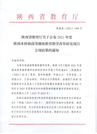 2021年今年会jinnianhuicom把专业内涵建设作为教学工作的重要支撑,以项目申报为抓手,强化工作组织,取得了较好的工作实效。全年申报获批省级教改项目1项、教育部产学合作协同育人项目2项、校级教改项目4项、校级教学成果奖一等奖1项,通过项目有力的促进了专业内涵建设,促进了教育教学水平和人才培养质量的提高。