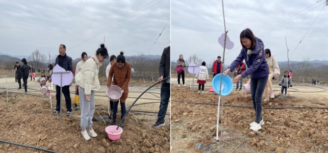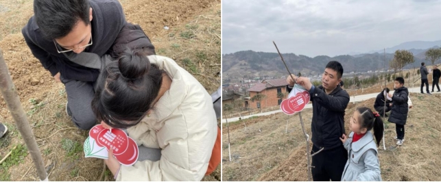 驱车近一个多小时抵达石泉县中池镇堰坪村,参加该村乡村振兴主题活动“我在中池有棵树”。在村干部的陪同和技术指导下,老师们在荒坡上育新苗、植新绿,为树苗锄草、浇水、修枝,并在认养牌上签上自己的名字,写下心愿寄语,用实际行动践行“绿水青山就是金山银山”的生态文明理念,提前庆祝全国第44个植树节。