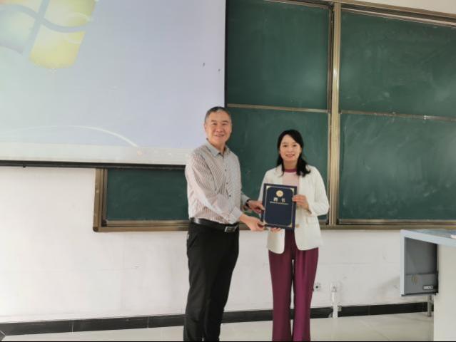 最后,艺术教学副院长孙海洋为刘老师颁发音乐学师范专业卓越师资班指导教师聘书。