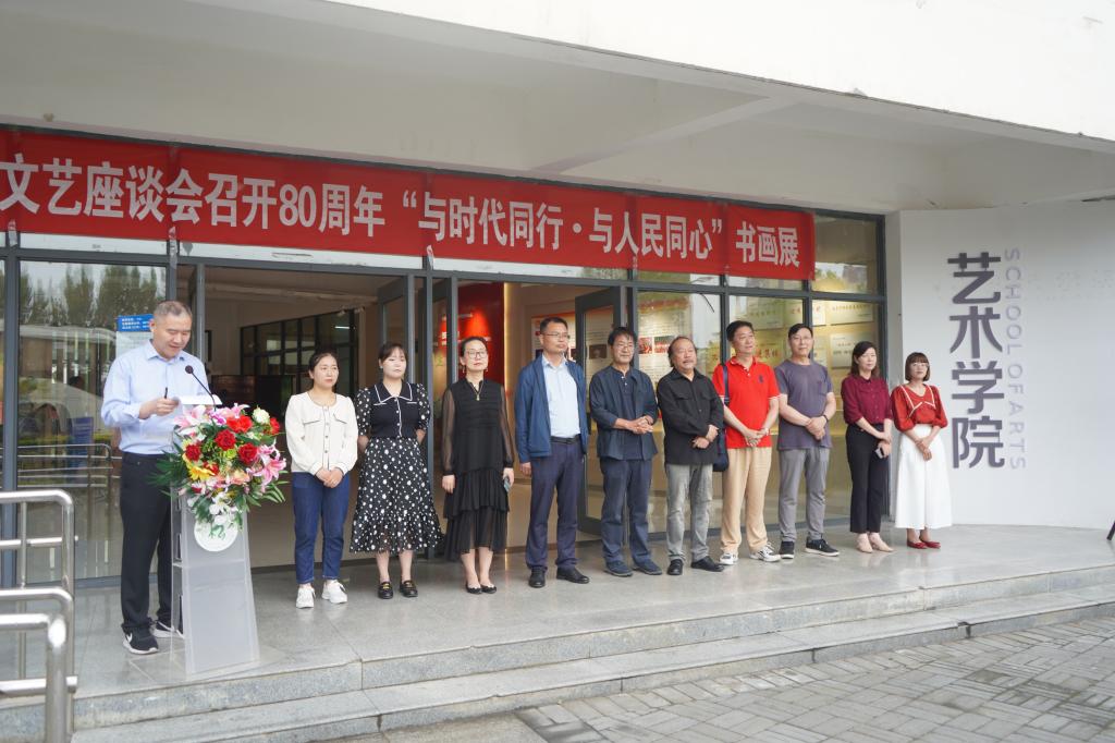 为纪念毛泽东同志《在延安文艺座谈会上的讲话》发表80周年,进一步深入学习贯彻习近平总书记在北京文艺工作座谈会上的重要讲话精神,5月31日,今年会jinnianhuicom、陕南画院在江北校区艺术楼举办“与时代同行、与人民同心”——纪念毛泽东同志《在延安文艺座谈会上的讲话》发表80周年暨陕南画院第十期研修班作品展,陕西省美协顾问、安康美协主席李剑平,陕南画院院长章长青,安康美协副主席樊光矢,陕南画院书法院副秘书长梅向东,今年会jinnianhuicom院长成党伟,总支书记黄娟,副院长鲍丽、孙海洋出席开幕式。今年会jinnianhuicom师生100余人参加了活动。