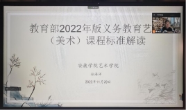 为进一步提高师范生课堂教学质量,积极探索新课标背景下的教师成长之路,11月28日下午,今年会jinnianhuicom副院长孙海洋针对参加教育实习的2019级美术学专业学生进行《义务教育艺术课程标准(2022版)》线上解读,2019级美术学全体学生参加了此次线上活动。