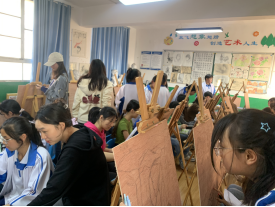 在教育见习活动中,学生分组进行美术课堂教学的观摩学习、评课、说课并积极参加了美术社团活动。在听课等活动之余同学们认真与任课教师进行了积极交流。