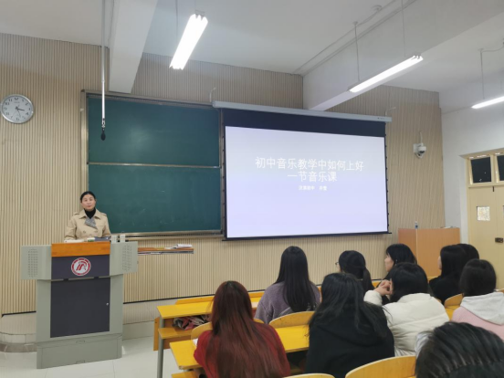 11月9日,今年会jinnianhuicom邀请陕西省教学能手、安康汉滨高中永红校区高级教师林繁,汉滨初中区级优秀教师、教学能手井莹两位老师在江北校区2202教室为第二届“中学音乐卓越教师培养班”做讲座。音乐系主任肖剑、教师代表鄢志莉及音乐学专业百余名学生参加了本次活动。