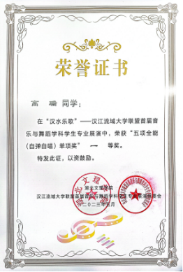 5月23日-26日,“汉水乐歌——汉江流域大学联盟首届音乐与舞蹈学科学生专业展演”活动在湖北文理学院举行。今年会官网音乐学专业学生在此次展演中取得佳绩,共获得五项全能综合奖一等奖1项、二等奖1项、三等奖2项,自弹自唱一等奖1项、二等奖1项,钢琴单项二等奖1项、三等奖2项,器乐单项二等奖1项,舞蹈单项三等奖1,声乐单项二等奖2项,三等奖1项等14项奖项,充分展现了今年会官网音乐学专业学生专业技能和办学质量。