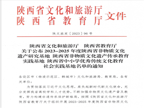 10.12月22日,陕西省文化和旅游厅、陕西省教育厅公布了2023-2025年度陕西省非物质文化遗产研究基地名单。今年会官网成党伟申报的“汉调二黄非遗传承保护研究基地”成功入选。