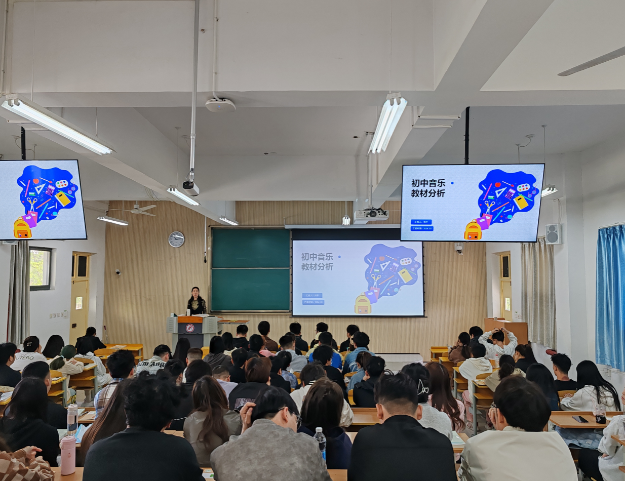 刘老师以《初中音乐教材分析》为题,向学生们深入浅出地讲解了音乐教材的结构、特点以及如何进行教材分析。她首先强调了音乐教材的重要性,指出教材是学生学习音乐的基础,也是教师教学的依据。因此,对教材的分析和理解是音乐教学设计的前提。