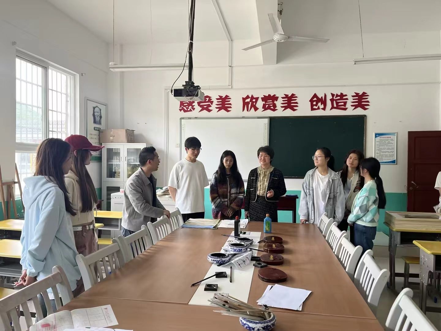 活动伊始,美术系主任杜敏,教师毛德龙带领学生前往岚皋县花里初级中学,参观校园,了解花里中学校情及美育课程建设情况。师生走进美术教室,观摩教学过程,与花里初级中学师生们进行了互动交流。通过近距离接触,学生们感受到了基础教育对中学生成长的重要性,同时也对美育教育的责任感有了更为深刻的认识,激发了他们对服务基础教育工作的热爱与责任感,促进了同学们投身基础教育教育情怀的培养。