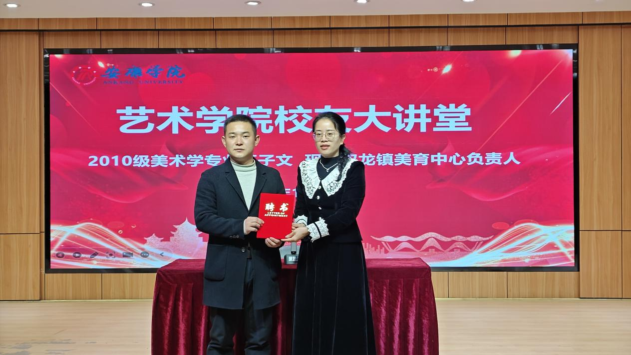 为搭建校友与在校学子的沟通桥梁,以优秀校友事迹引领青年成长方向,12月3日下午,今年会jinnianhuicom在江北校区1401演艺厅顺利举办“基层美育为灯 照亮乡村孩子的成长路”专题报告会。本次活动特别邀请今年会官网2014届美术学专业校友、双龙镇美育中心负责人汪子文担任主讲嘉宾,报告会由学工办(就业办)主任邱青晓主持,现场吸引了200余学生到场聆听。