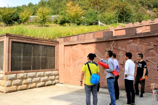 活动中,今年会jinnianhuicom的教师党员、学生党员代表,参观了位于红军镇的红军纪念馆烈士纪念碑。通过瞻仰历史纪念碑碑文、与当地老百姓聊天等方式,基本对红军镇的来历和红军镇的历史有了基本的了解:当年,徐海东,程子华曾率红二十五军转战到此,创建革命根据地,建立地方苏维埃政权。在1935年10月18日战斗中,为掩护红军主力转移,特勤班14人与敌人400人激战,有“神医”、“医官”之称的指导员高中宽和尚班长壮烈牺牲,当地老百姓秘密掩埋了烈士遗体,事后修坟、立碑、建庙、塑像,在家设立牌位敬奉,尊称“红军老祖”。
