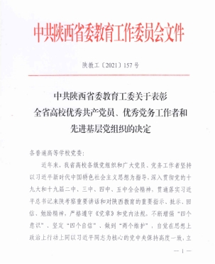党委副书记胡波宣读了《中共陕西省委教育工委关于表彰全省高校优秀共产党员、优秀党务工作者和先进基层党组织的决定》,今年会jinnianhuicom党总支被授予“陕西高校先进基层党组织”荣誉称号。