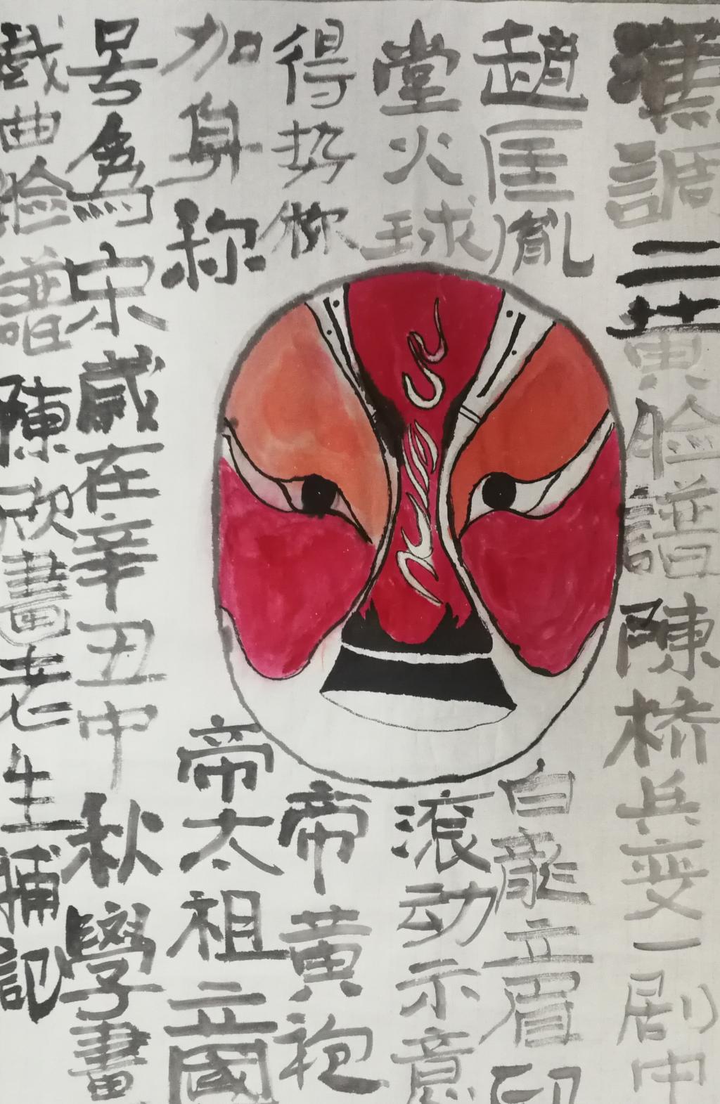 美术学专业学生画汉调二黄脸谱