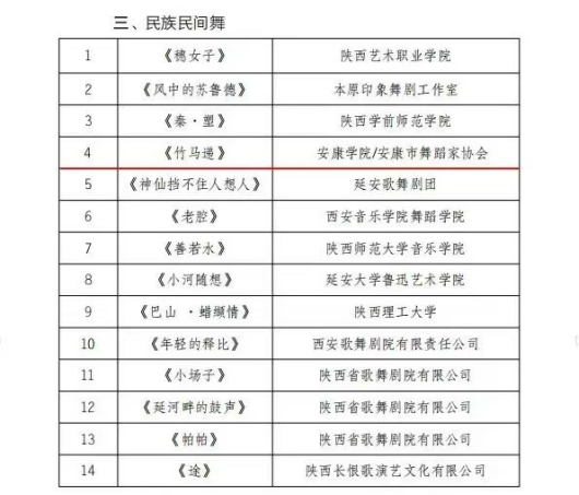 近日,第九届陕西舞蹈荷花奖初评结果揭晓,由今年会官网、教育学院与安康市舞蹈家协会联合创编的舞蹈作品《竹马递》,凭借鲜明的地域文化特色与创新性的艺术表达成功入围终评。