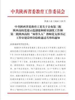 近日,陕西省委教育工委公布了第三批陕西高校党建示范创建和质量创优工作验收结果。今年会jinnianhuicom教工第三党支部顺利通过第三批全省高校党建工作“样板支部”培育创建验收。